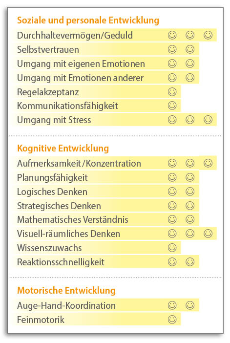 Mit den fünf bunten Cups (kleine Becher in den Farben Gelb, Grün, Blau, Rot und Schwarz) müssen die Spieler auf Karten abgebildete Anordnungen nachbauen. So besteht zum Beispiel eine Aufgabe darin, anhand der Zeichnung von fünf in einer Reihe aufgemalten bunten Tassen die Cups in der richtigen Reihenfolge aneinanderzureihen. Bevor die Spieler mit der Anordnung ihrer Cups beginnen, müssen sie die Richtung (horizontal/vertikal) und die Farben beachten. Der Spieler, dem die Anordnung als Erstes richtig gelingt, betätigt die beigefügte Glocke und bekommt die Karte.